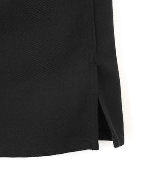 ヒップを覆うロング丈にサイドスリットを入れ、胸に内ポケットを備えたデザイン。シンプルながら素材の存在感が際立つ仕上がり。