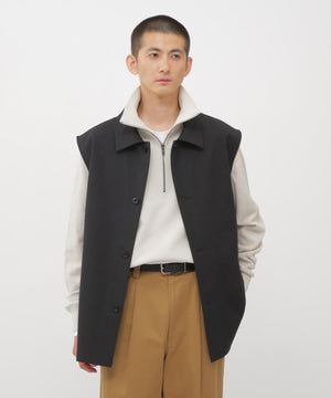 ウールとコットンを撚り合わせたタテ糸と、異なる種類のウールを組み合わせたヨコ糸で織り上げたドリル素材のシャツ。3種類の糸を撚り、織り、加工することで立体感のある綾目を表現した風合い。 コットンの質感を活かしたドライな表情が特長。