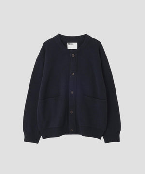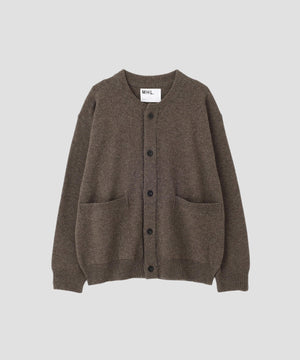 英国製シェットランドウールのインポート糸で編み立てたクルーネックカーディガン。シェットランドウールならではの風合いを活かし、深みのあるTOP糸のカラーリングが魅力。