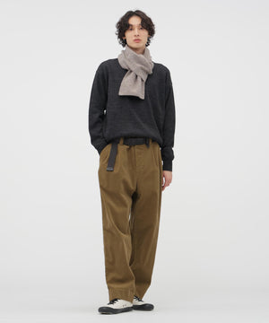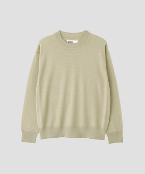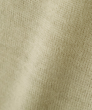 ヴィンテージの子供服から着想を得て選んだ糸を使用したニット。エイジングを思わせるドライな質感と、薄手ながらハリとコシのある風合いが特徴。英国羊毛をブレンドした梳毛糸で表現した素材。