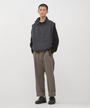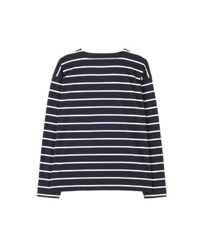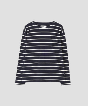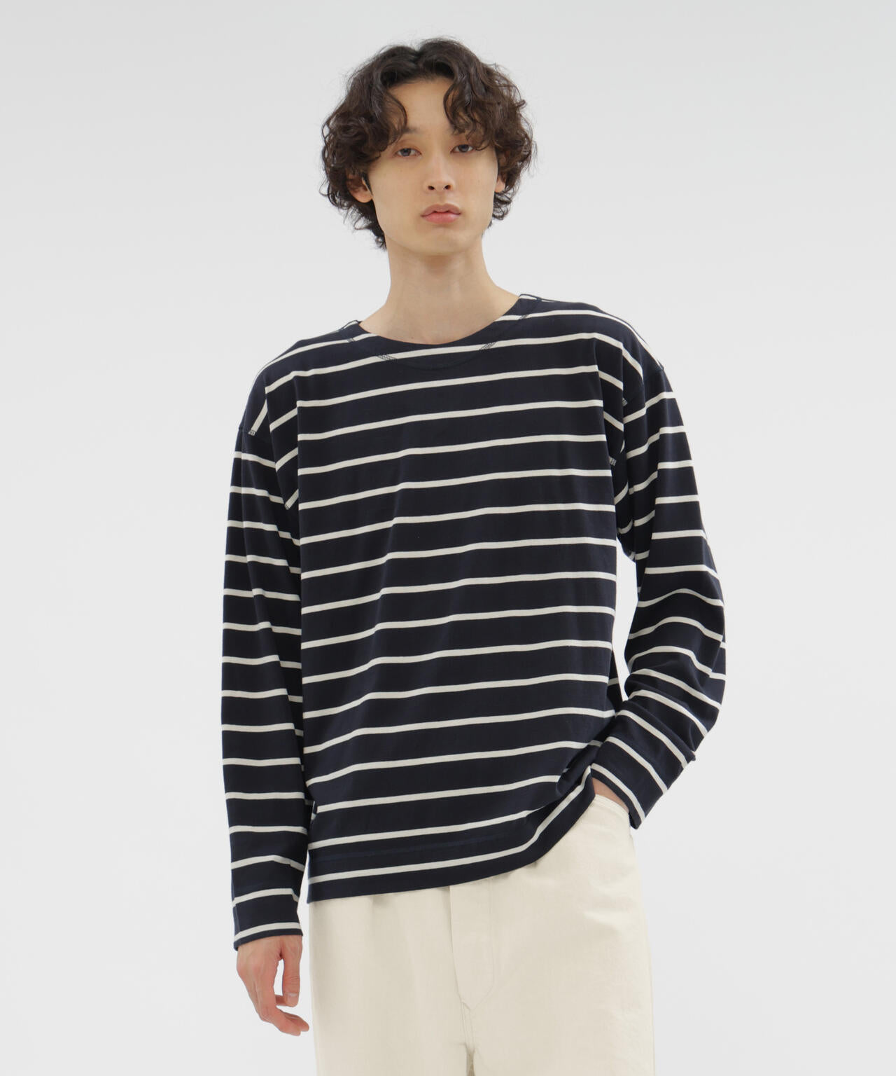 ネックラインはクルーネックのように詰まったカッティングで、さりげない個性が際立つバランス。シャツやニットのインナーとしても、トップスとしても着用しやすいアイテム。