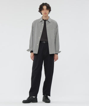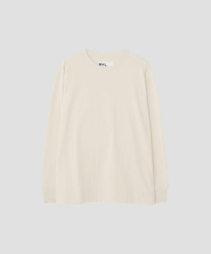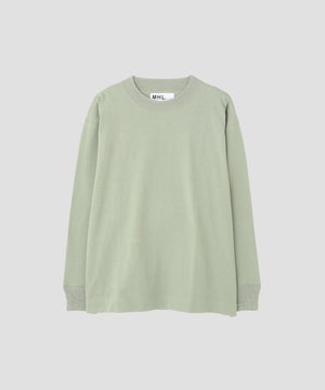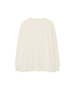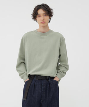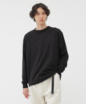ゆるやかに編むことで、ウールのようなタッチとコットンならではの快適さを兼ね備えたアイテム。襟と袖口は同じ糸で切り替え、袖口のタックをさりげないアクセントにしたデザイン。全体をカバーステッチで仕立て、サーマルTシャツを思わせる一枚。