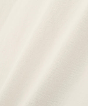 膨らみとドライな質感をあわせ持つ太番手の空紡糸を使い、コットンの繊維を残して編み立てたジャージー素材のTシャツ。さりげない陰影が出て、あたたかみのある風合いが特長。