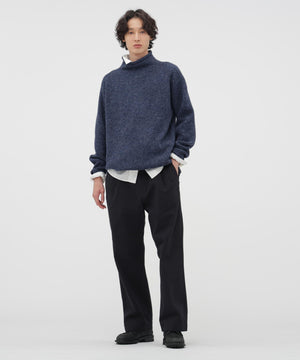 軽さのあるコットンツイルを高密度に織り上げた、MHL.オリジナル素材を用いたトラウザーズ。インディゴはタテ糸を中白に仕上げることで、加工後に自然なフェードと上品なアタリが生まれる色合い。チョークはわずかにグレーを含んだ深みのあるオフ白で、落ち着いた表情に整えたカラー。一日に約60mほどしか織れない密度のある生地が生む、軽さとタフさを併せ持つ風合い。
