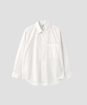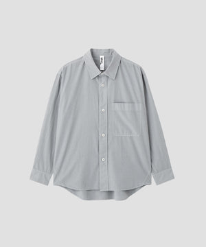 着丈を長めにしたリラックスフィットのシルエットで、オープンカラーとワイドな前立てを組み合わせたフラットなデザイン。襟には月腰切り替えを入れて着心地を高め、個性的な裾ラインは一枚着としてはもちろん、レイヤードのアクセントにもなる一枚。