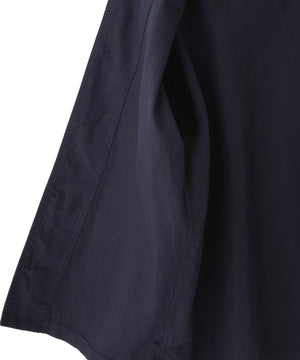 コットンとヘンプを用いた、ナチュラルな膨らみを持つオックスフォード素材のシャツ。タテ糸にコットン、ヨコ糸にヘンプを使用し、織り上げた風合いを活かして軽く仕上げることで、太番手ならではのざっくりとした質感と自然なボリュームを引き出した生地。