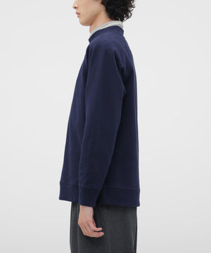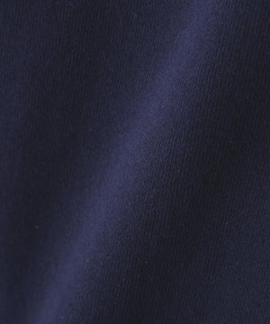 表面に空紡糸を用いた、ドライタッチのループバック素材のスウェット。重くなりすぎないよう目付を調整し、見た目にほどよい存在感がありながら軽い着心地を備えた仕上がり。