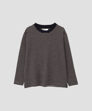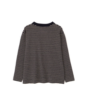 編み組織で凹凸をつくり、表情のあるストライプ柄に仕上げたコットンジャージー。立体感のあるテクスチャーが特長で、一枚でも印象に残る素材感。