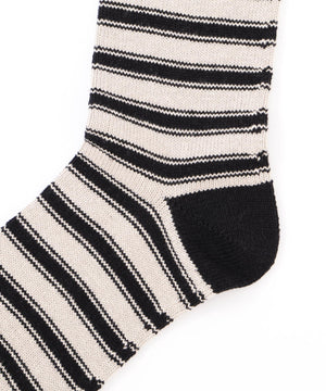 ヴィンテージのニットから着想を得た、ストライプ柄のコットンソックス。コットンならではのナチュラルなムラ感が、ウールソックスのような温もりを感じさせる素材。