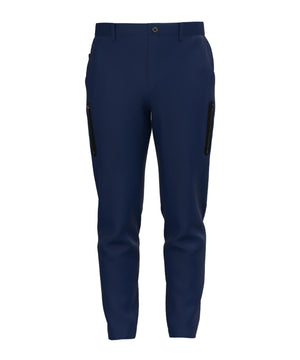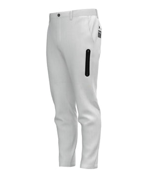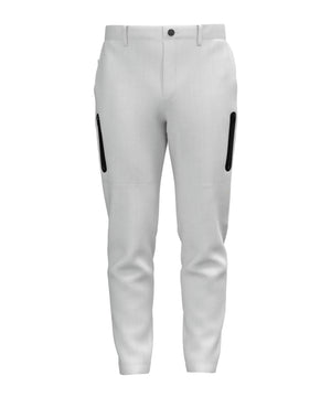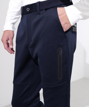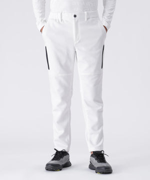 サイドにジップポケットをつけて収納性を高めた、 全方向ストレッチRENUキルト/ダンボールジャージ テーパードパンツ。