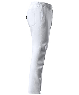 楽なはき心地を維持するゴム入りのウエストベルトを採用した、全方向ストレッチコーデュラテーパードパンツ。