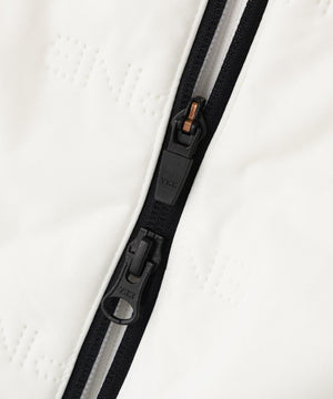 体温を保つことで身体を暖かく保つ 保温性に優れた キープウォームと、中綿をピンソニック加工で挟み込んだ、三層構造による 保温仕様で、あらゆる方向へのストレッチを妨げることなく中綿をしっかりキープできる ソニックキルトを採用しています。