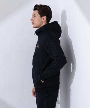 立体ロゴがコーディネートのポイントになる、全方向ストレッチRENUキルトダンボールジャージフルジップフーディ。