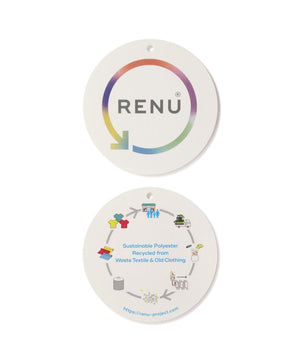 ファッション業界が抱える大量破棄問題に対するソリューショ ンとして提案する、繊維由来のリサイクルポリエステルのRENUを採用。