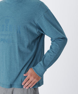 フロントロゴがコーディネートのポイントになる、TC天竺ルーズシルエット長袖ハイネックシャツ。