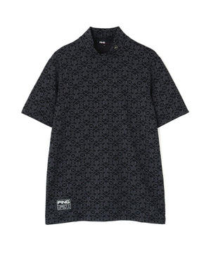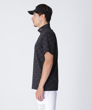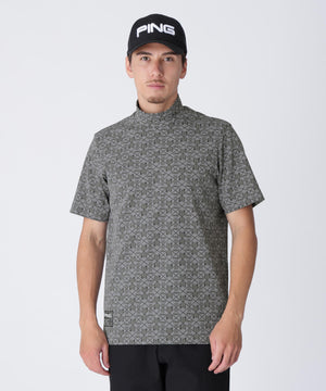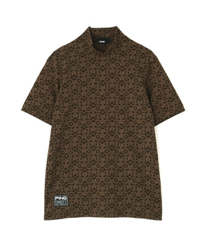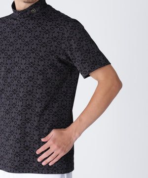 シックなカラーにグラフィックを入れて遊び心をプラスした、総柄デザインの半袖ハイネックシャツです。