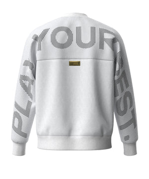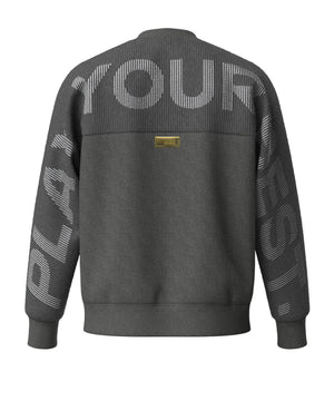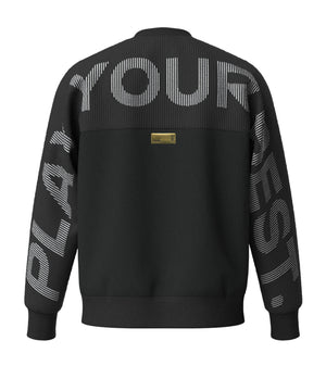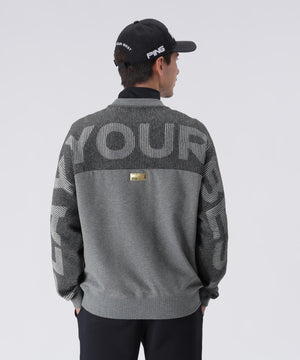 PLAY YOUR BEST.ロゴで大きなインパクトを与えた、ジャカードニット/カットソー リップルロゴクルーネックニットプルオーバー。
