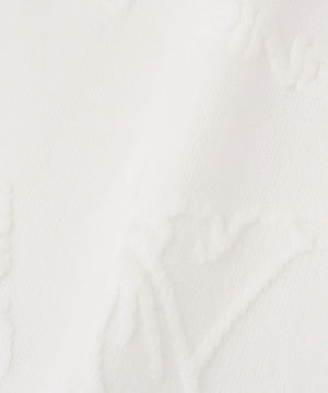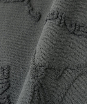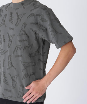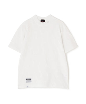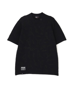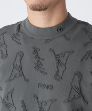 PINGの人気キャラクターとロゴをランダムに配置して立体的な奥行きのあるデザインに仕上げた、Mr.PINGジャガード半袖ハイネックニット。