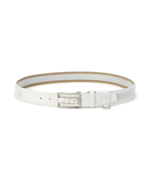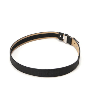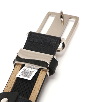 暑いシーズンに最適な素材を使用した、特徴的なスクエアバックルが目を引くベルトです。