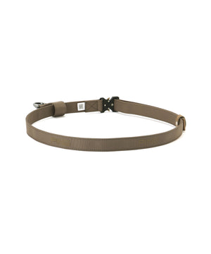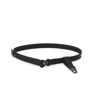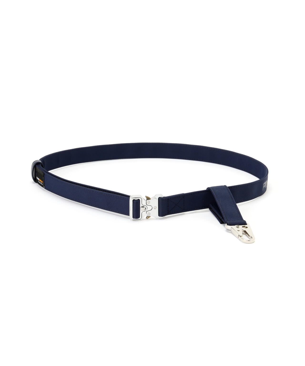 デザイン性と実用性を兼ね備えた、カナビラ付きコーデュラテープベルト。