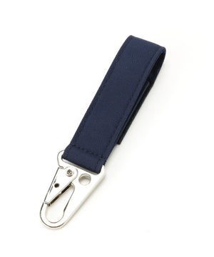 ポーチの携帯やフックなどを取り付けられる、ベルクロで着脱可能なカラビナ付き。