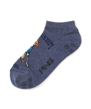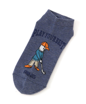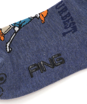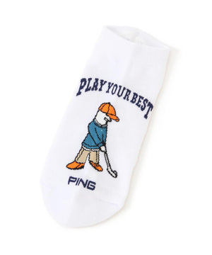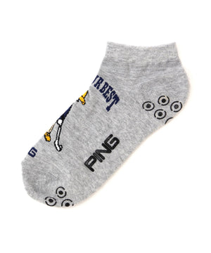 カラフルにデザインされた人気キャラクターのMr.PINGがポイントの、アンクルソックス。