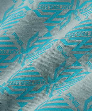 アリゾナのイニシャルを格子状の総柄でりげなく表現した、AZモノグラムジャガードブロックロゴ半袖ポロシャツ。