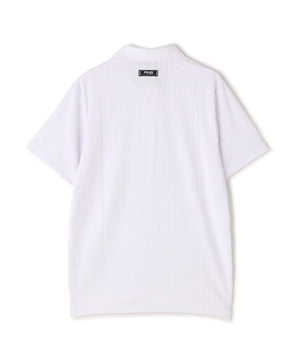 凸凹で表現したストライプが上品でクリーンな印象を与えてくれる、凸凹ストライプジャガード半袖ポロシャツ。