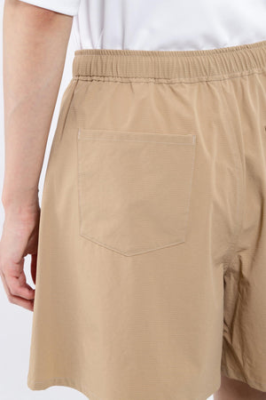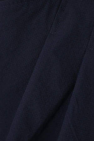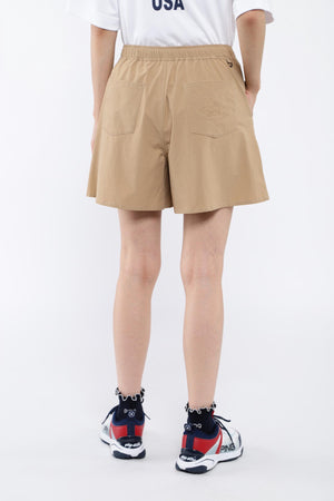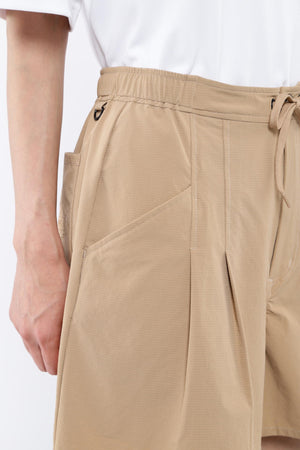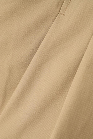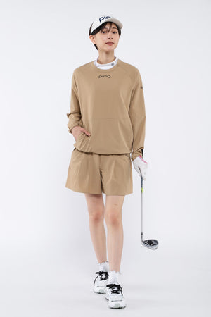 拘りのタックディテールで腰回りをスッキリとキレイに見せてくれる、2WAYストレッチリップストップショートパンツ。エレガントな雰囲気と美脚効果を発揮できるようにたっぷりの裾巾をとって仕立てた、キュロットシルエットのショートパンツです。腰まで縫い止めしてメリハリ感を与えた、ヘルシーな着こなしにピッタリの1着に仕上がっています。身体の動きを自由にしてくれる、ボトムストレッチ素材で人気の高いクロスムービングを採用。ウエストには伸縮性の良いゴムベルトを配し、ベルトレスでもはけるようにドロストを通した夏場に嬉しい仕様です。ゴルフはもちろん、アウトドア、レジャー、タウンなどの幅広いシーンで活用できます。セットアップコーデが楽しめる、同シリーズのプルオーバーのご用意がございます。