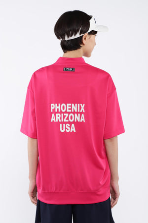 PINGの発祥地を彷彿とさせるインパクトのあるロゴが落とし込まれた、杢ストレッチポンチスペースマスターUV半袖ハイネックカットソー。べたつきにくく快適な着心地を体感できる吸水速乾性に優れたクイックドライと、吸水速乾性と軽量性が特徴のスペースマスターを採用しています。さらに、紫外線から肌を保護するUVカット加工を施し、暑いシーズンにオススメの1着に仕上げています。1枚でスタイリングがキマる、リラックス感を演出するオーバーサイズなのもポイントです。