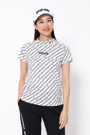 【PING APPAREL】総柄転写プリント クールコア ストレッチ起毛半袖UVハイネック<PERFORMANCE> (LADIES)