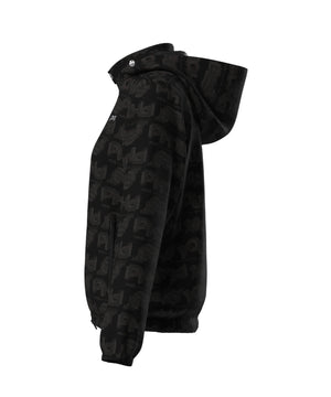 高撥水のウォーターリパレントを採用して機能性も充実させた、フードが着脱可能な総柄プリントのフーディブルゾンです。