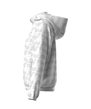 メッシュの裏地をつけてより軽く羽織れるように仕上げた、PHONEIX BREEZE総柄プリント全方向ストレッチフーディブルゾン。
