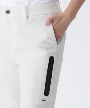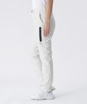 サイドにジップポケットをつけて収納性を高めた、 全方向ストレッチRENUキルト/ダンボールジャージ テーパードパンツ。