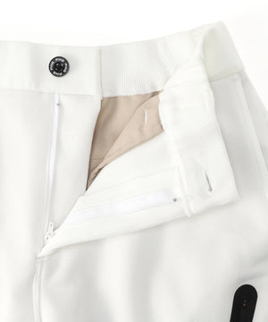 全方向に伸縮し、動きやすく快適な着心地を体感できるボトムストレッチ素材のクロスムービングと、 ファッション業界が抱える大量破棄問題に対するソリューショ ンとして提案する、繊維由来のリサイクルポリエステルの RENU を採用。