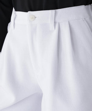 大人の抜け感を演出するツータックを施して脚のラインがキレイ見えする美シルエットに仕立てた、全方向ストレッチニットコーデュロイキュロットパンツ。