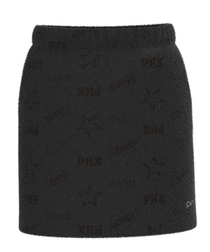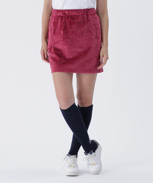 上品で表情豊かなベロアの表面に人気のモチーフを入れてPOPに仕上げた、全方向ストレッチベロアジャガードスカート。