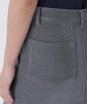 脚のラインがキレイに見えるスッキリしたシルエットで仕立てた、全方向ストレッチニットコーデュロイ台形スカート。