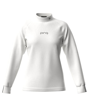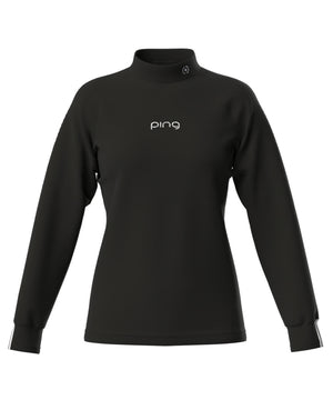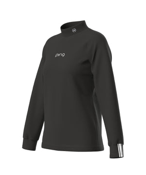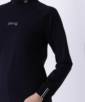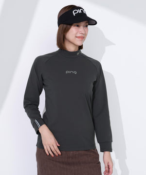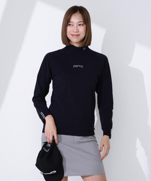 レディースならではの小文字のpingロゴをフロントに入れてスポーティーなアクセントを効かせた、サーモソーラー バックカノコ長袖ハイネックカットソー。