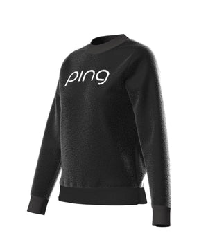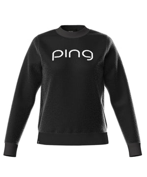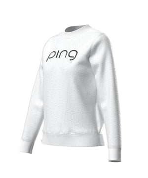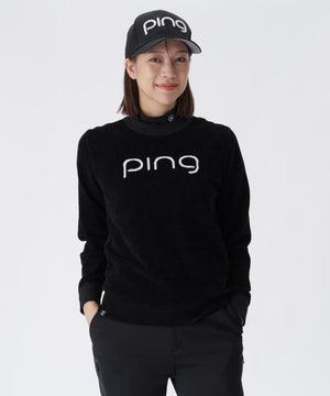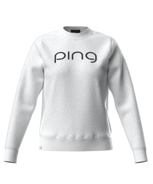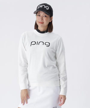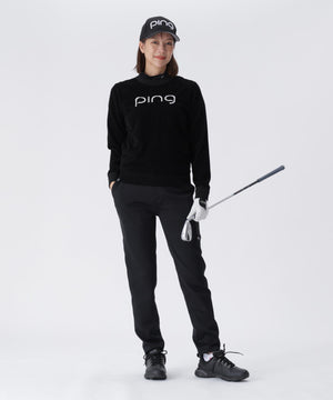 レディースならではの小文字のpingロゴとバックロゴでインパクトを与えた、pingジャカード モールニットクルーネックニットプルオーバー。
