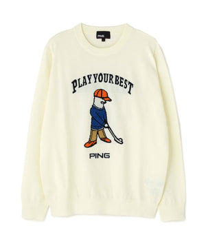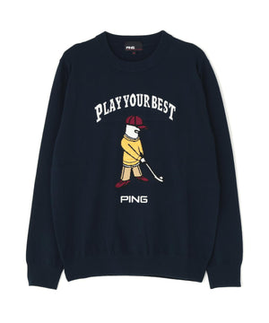 PINGの人気キャラクターMr.PINGをフロントにカラフルに表現した、Mr.PINGジャガードクルーネックニットプルオーバー。