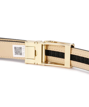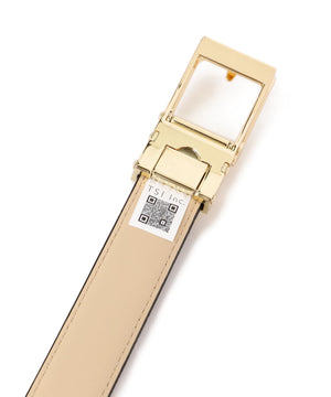 主張しすぎないロゴがポイントになった、スライドバックルベルト。