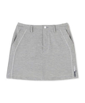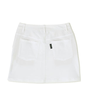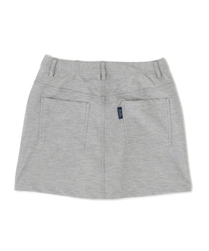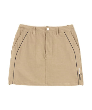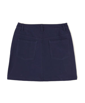 ヒップラインのカバーにも効果を発揮するパッチポケットとパイピングディテールがコーデのポイントになる、全方向ストレッチツイル台形スカート。