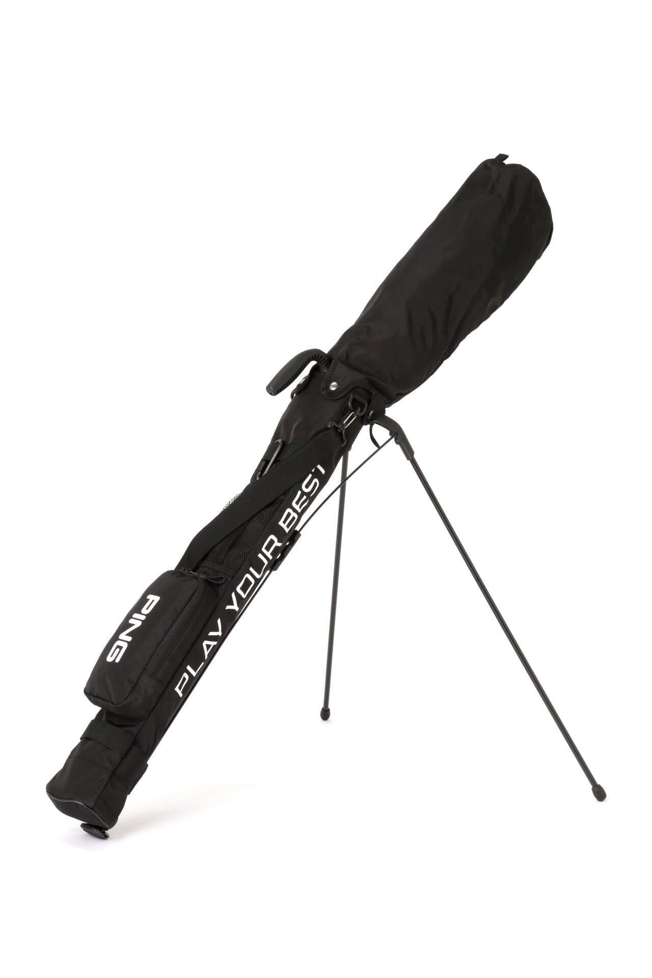 ハンドル付きで持ちやすい、46インチ対応のGB-P2405 STAND CLUB CASE。練習場はもちろん、アプローチ、セルフプレー、旅先のゴルフシーンなどでも大活躍する、クラブ5、6本収納可能な2分割の口枠を採用したスタンド式のクラブケースです。ホワイトのロゴワークがブラックに映える、街の風景にも馴染むスタイリッシュなデザイン。スッキリしたスリムシルエットなので、電車などの移動でも場所を取りにくく持ち運びしやすい仕様です。ショルダーベルト、カラビナ、フードカバーの装備と、丈夫で軽量性を兼ね備えた素材のボディと安定性を強化した構造で使いやすさを向上した作りです。