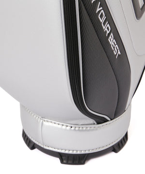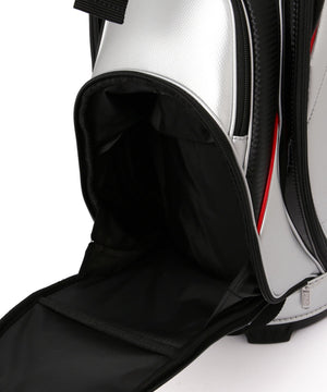 フルセットのクラブを収納した状態でも運びやすい2つ穴グリップやカーボン調PU素材にエナメルロゴを施すことで、機能面と外観の両面で満足いただける仕上がりになっています。