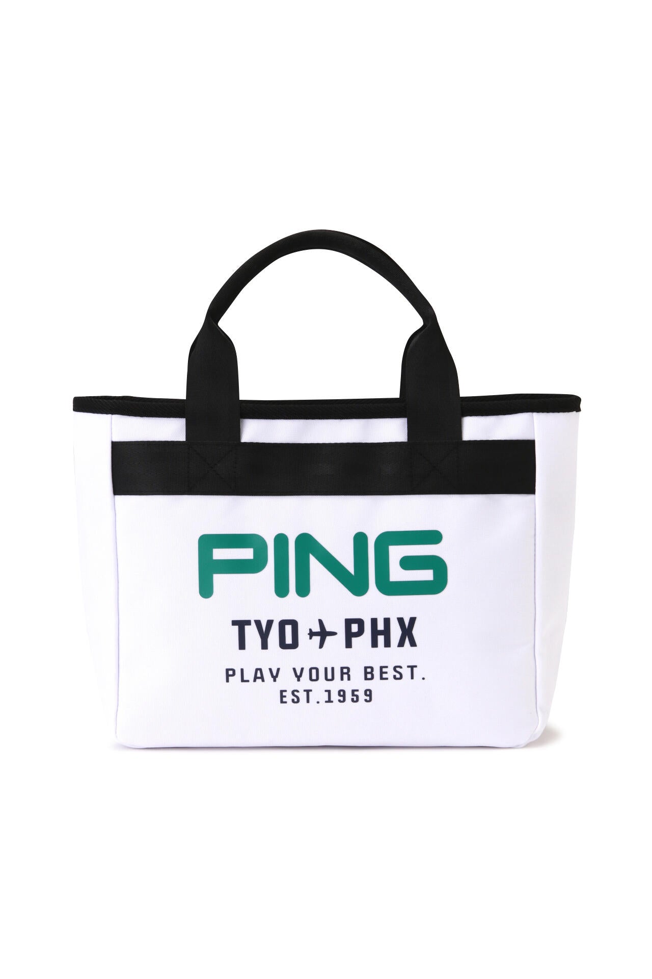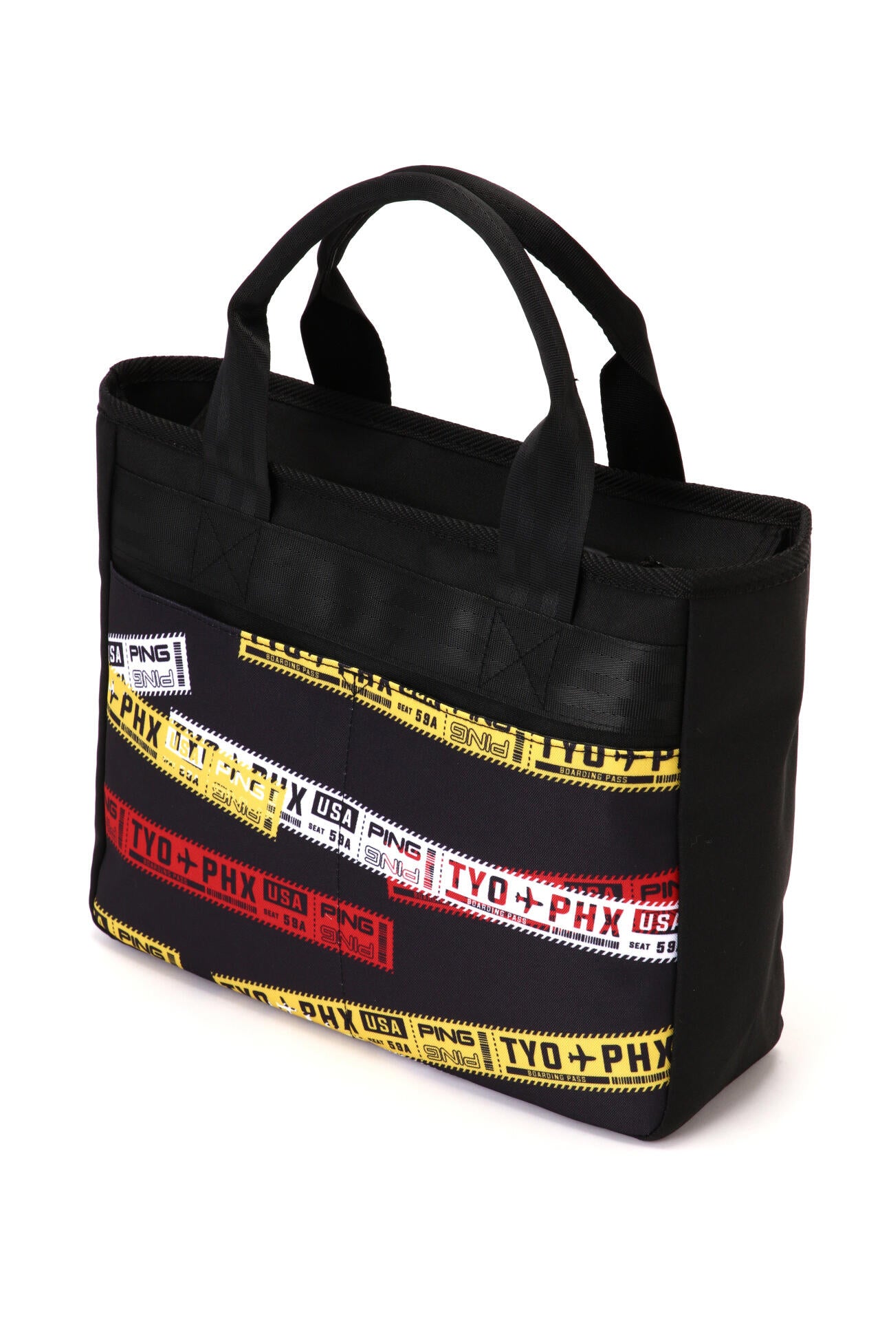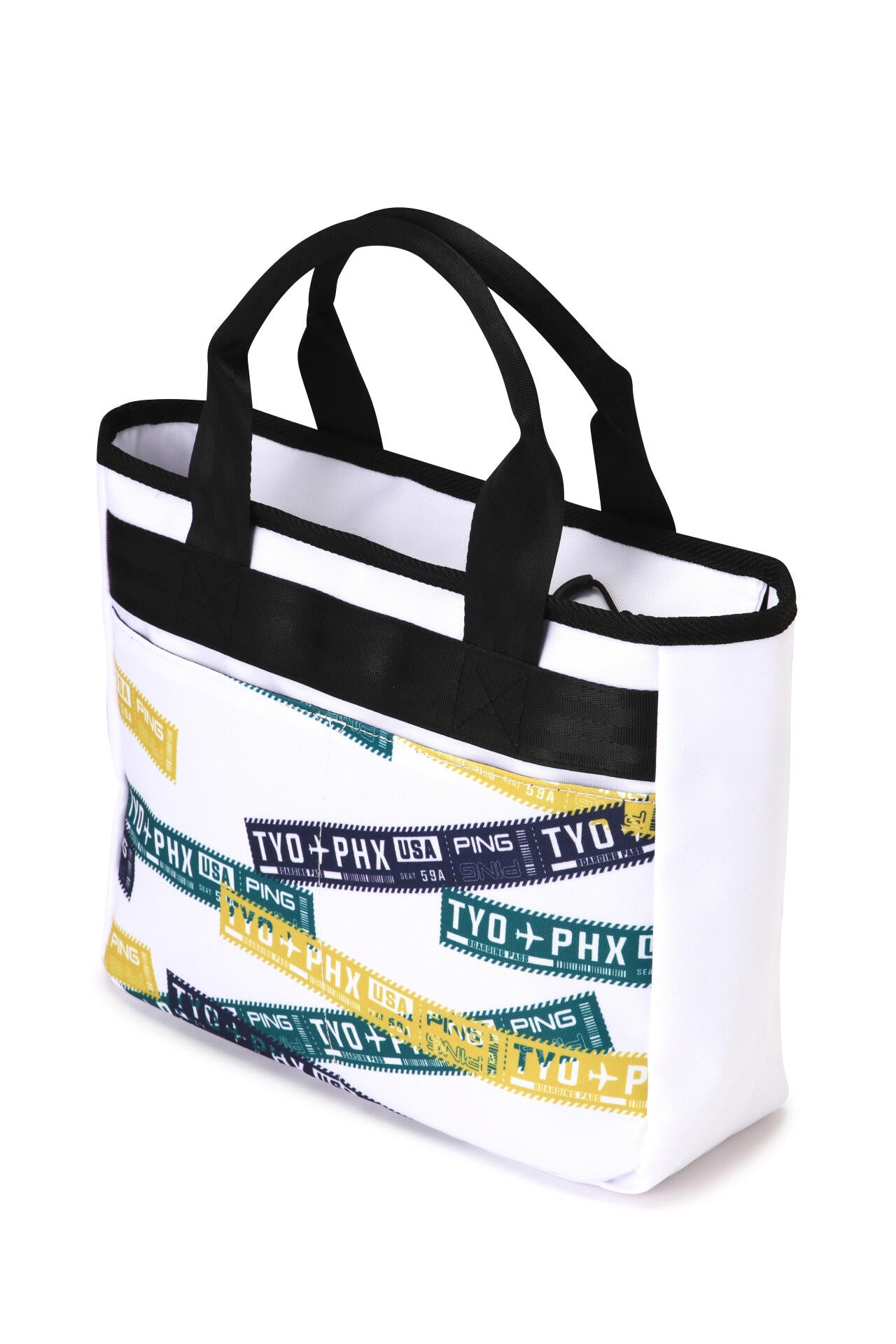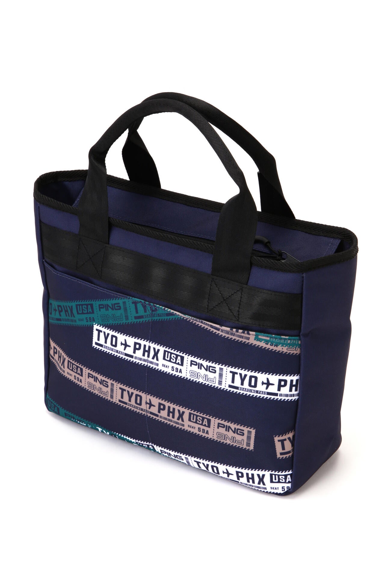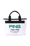 PINGのロゴとフライトチケットをモチーフにしたグラフィックでインパクトを与えた、GB-F2502 ROUND TOTE。ラウンド荷物をまとめて持ち歩ける、ちょうど良いサイズ感のトートバッグです。ゴルフはもちろん、アウトドアやちょっとした外出にも便利に使用できる逸品です。