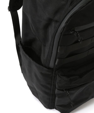 前面にカラビナなどをかけられるウェビングテープ付きの、ストリート感のあるデザインながら実用的で、ゴルフから日常やちょっとした旅行まで活躍できるバックパックです。