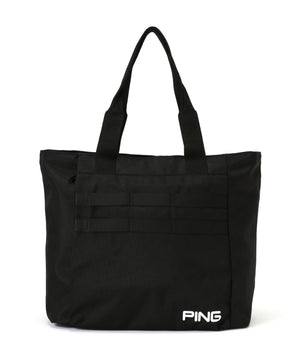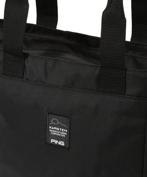 前面にカラビナなどをかけられるウェビングテープ付きの、ストリート感のあるデザインながら実用的で、ゴルフから日常やちょっとした旅行まで活躍できるトートバッグです。