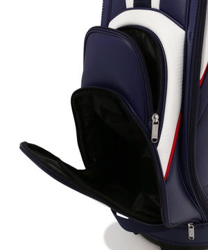 フルセットのクラブを収納した状態でも運びやすい2つ穴グリップやカーボン調PU素材にエナメルロゴを施すことで、機能面と外観の両面で満足いただける仕上がりになっています。