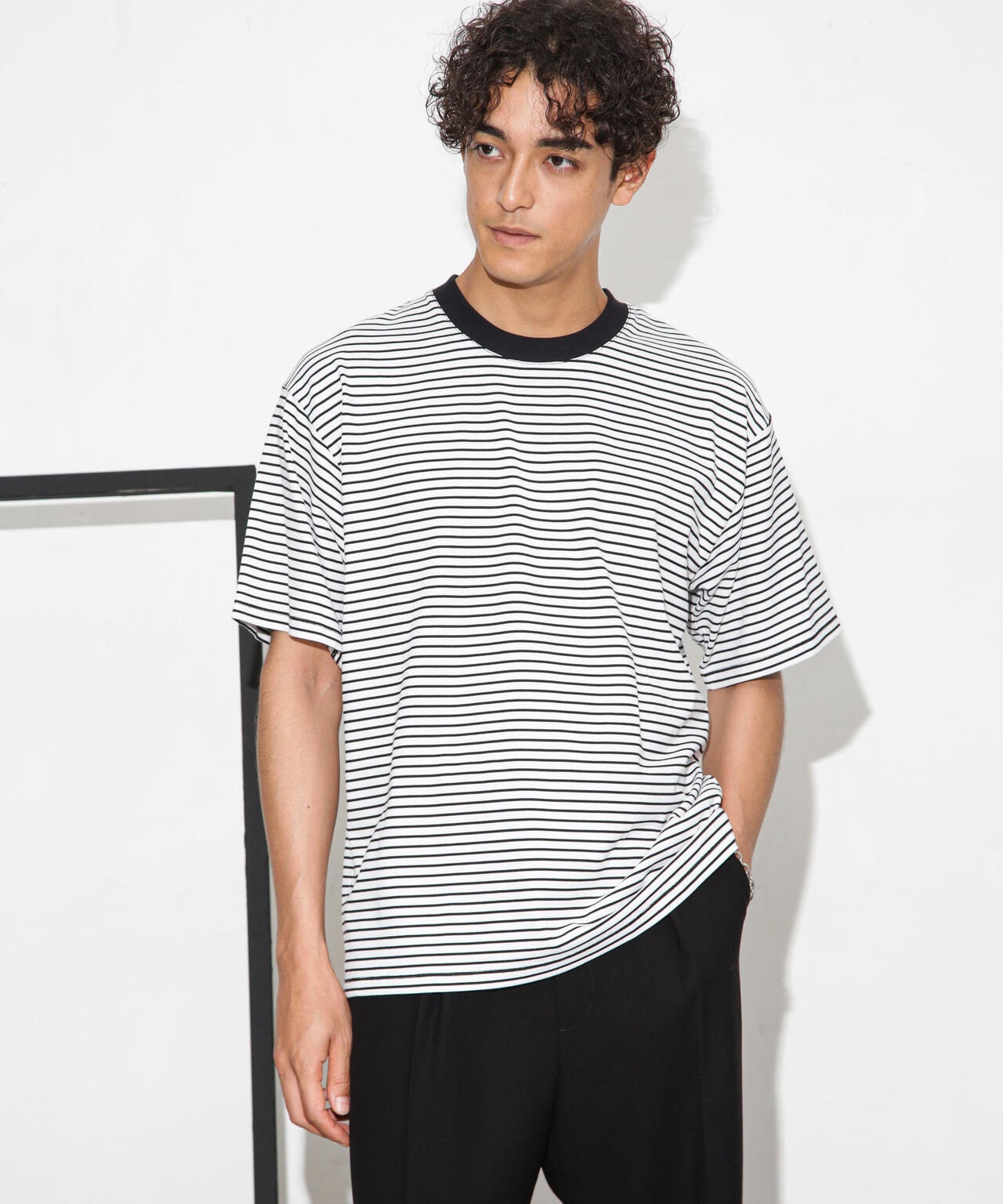 Anti Soaked 汗染み防止ボーダークルーネックT半袖